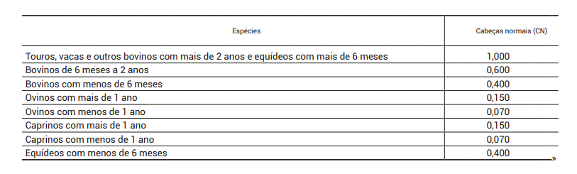 6 - Para efeitos do disposto no número anterior, considera-se cabeça normal (CN) a unidade padrão de equivalência usada para comparar e agregar números de animais de diferentes espécies ou categorias, tendo em consideração a espécie animal e a idade, constante da tabela anexa ao presente decreto-lei e do qual faz parte integrante.