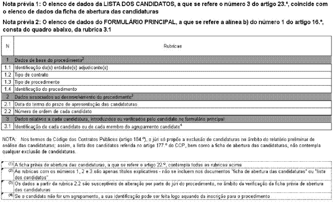 4 - Nos termos do disposto nos n.os 1 dos artigos 177.º e 138.º do CCP, existe igualmente uma correspondência, com as necessárias adaptações, do documento «lista dos candidatos» ao documento «lista dos concorrentes», referido nos artigos 22.º e 23.º |