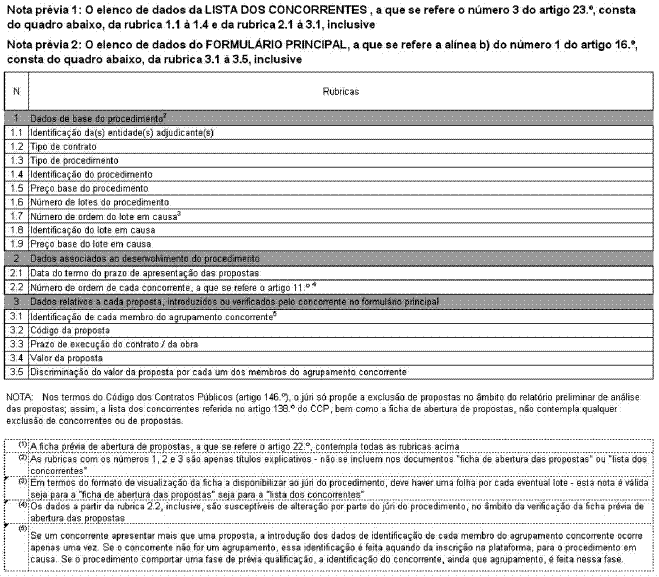 ANEXO V Elenco de dados da ficha de abertura de propostas - [revogado - Lei n.º 96/2015, de 17 de Agosto] |